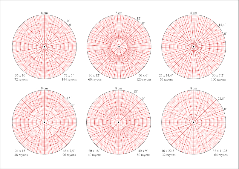 96 rayons à 7,5°80 rayons à 9°64 rayons à 11,25°