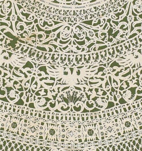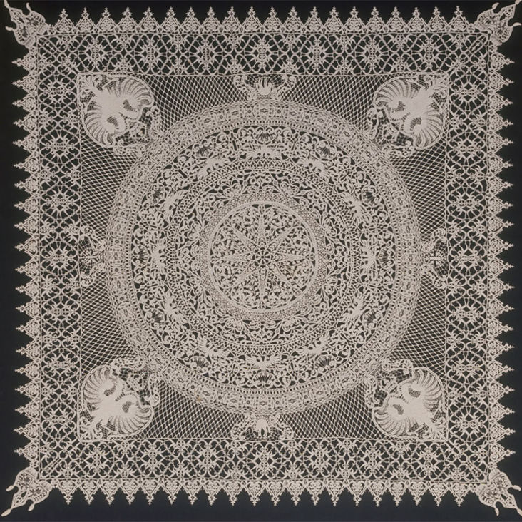 Issues du linge de Philippe IV d’Espagne, deux nappes carrées de dentelle presque identiques ont été conservées : l’une au Victoria & Albert Museum de Londres, l’autre au Textilmuseum de St. Gallen en Suisse.