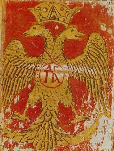 Après la division administrative de l’Empire romain entre l’Occident et l’Orient, et la chute du premier au Ve siècle, le symbole de l’Empereur d’Orient est une aigle impériale à une tête, reprise des insignes des légions romaines contrôlant les frontières.