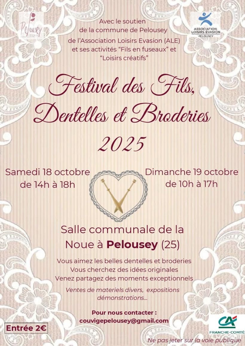 Exposition et démonstrations de la dentelle aux fuseaux et de broderies diverses. Vente de matériels divers.